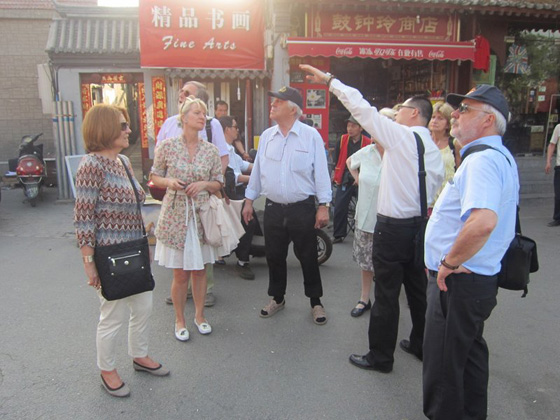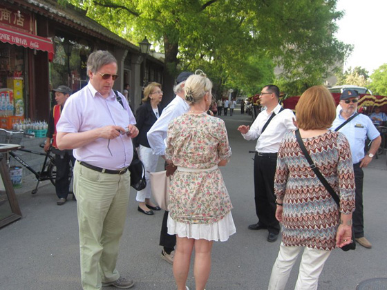 Nach dem Bezug der Zimmer im schönen Hotel Beijing Radisson im Chaoyang District und Mittagessen im Beijing Jindingxuan Ditan -Restaurant begannen bereit die ausgedehnten Besichtigungen mit dem Besuch des Lama -Tempels des Behai -Parks und der Hutong am Houhai -See, den wir dann mit einem Bummel durch die engen Gassen abschlossen .