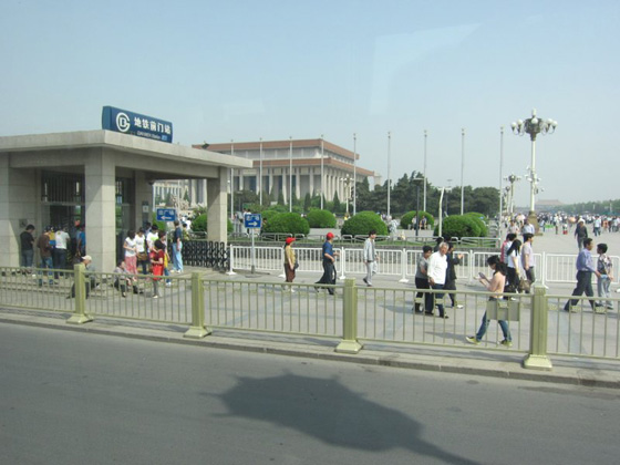 Der Tian'anmen -Platz gilt als der größte innerstädtische Platz der Welt. Mao verkündete hier 1949 die Gründung derVolksrepublik. Und hier steht auch seit1977 sein Mausoleum . In der Mitte erhebt sich die Gedenkstele der Volkshelden.Das Tor des himmlischen Friedens (Tian'an Men)aus dem Jahr1417 bildet im Norden den Abschluß.