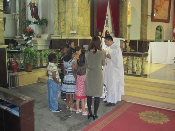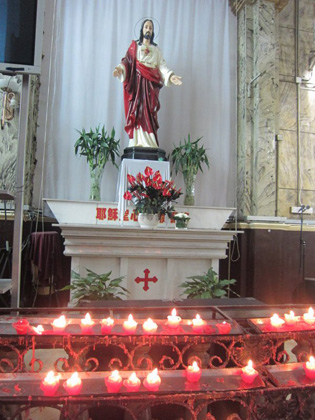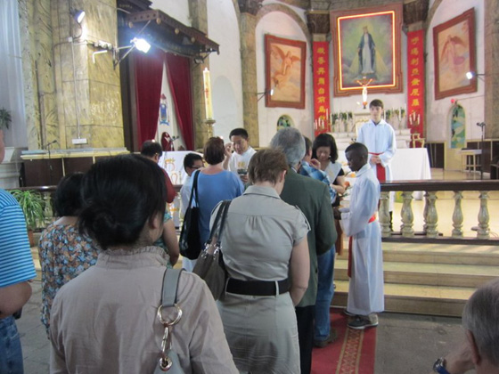 katholischen Diözese Beijing, wo wir die hl.Messe in englischer Sprache feierten.Die Kathedrale ist der Muttergottes-Immaculata-geweiht , die auch als Kaiserin von China und Engelskönigin verehrt wird.