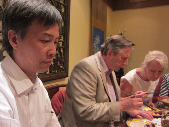 Zum gemeinsamen Abendessen mit Pekingente und vielen anderen Köstlichkeiten begrüßten wir den alten Freund des Präsidenten und früheren Botschafter der VR China