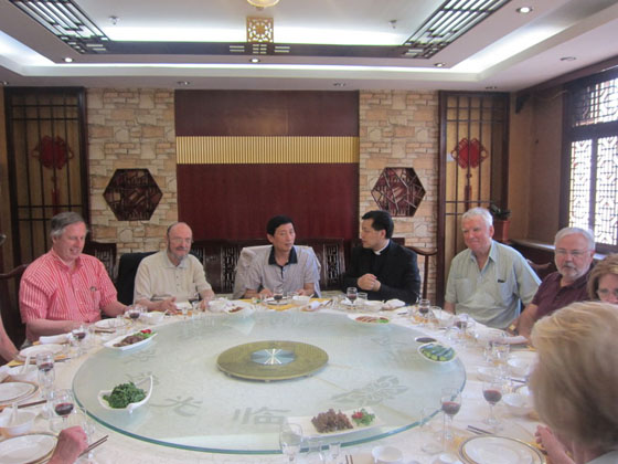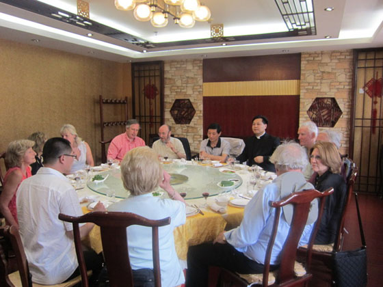 Mit großer Freude erfüllte uns aber, dass es sich Freunde des Präsidenten – der frühere Verteidigungsattache' der VR China in Wien ,Großoberst HE Yuanheng, und der frühere Dompfarrer der Bischofskathedrale NanTang – und nunmehrige Pfarrer der großen Pfarre Ying Nong( Friede auf Erden) an der großen Mauer ,Father Francis Xavier Zhng Tianlu, nicht nehmen ließen, uns trotz langer-dreistündiger - Anfahrtzeit schon im Flughafen zu begrüßen .