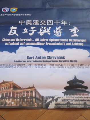 Die Universität Wien ist eine Partneruniversität und über den Leiter des Konfuzius-Instituts Ao.Univ.Professor Dr Richard Trappl , einem langjährigen Freund von Si Li Hua lernte dieser anläßlich einen Besuches mit einer Studenten -Künstlergruppe zum Laternenfesgtes am Endedes chinesischen Neujahrs-oder Frühlingsfestes 2012 Prof Liu Liqun kennen, de ihn spontan einlud im Rahmen der nächsten Chinareise an seinem Institut eine Vortrag über Österreich und die Beziehungen zwischen Österreich und der Volksrepublik China zu halten.Und dies wurde nun vor ca .Studenten hoher Semester und Assistenzprofessoren realisiert.