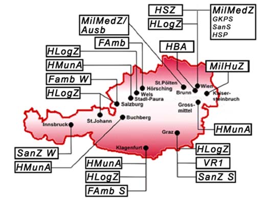 Heereslogistikzentren in Wien, Wels, Graz, Klagenfurt, St. Johann/T und