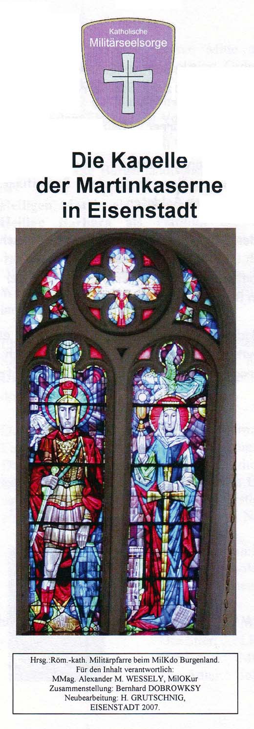 Das von der röm.kath . Militärpfarre beim MilKdo Burgenland herausgegebene und von MilOKur Militärpfarrer MMag Alexander M.Wessely zusammengestellte Informationsblatt zur Hauskapelle beschreibt diese wie folgt: