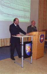 Die Begrüßung erfolgte durch Herrn Bgdr. Mag. Dieter Jocham, Kdt. der HVS und Ehrenmitglied des ÖMV, im Mehrzwecksaal der VPW- Kaserne. In diesem Saal fand übrigens auch die ÖMV-Marineausstellung im Rahmen der „Logpower 2006“ statt.