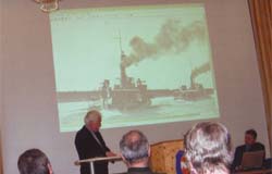 Die Vortragsreihe wurde von Prof. Dieter Winkler eingeleitet. Seine Ausführungen waren wie immer interessant, mit vielen geschichtlichen Details und einer Fülle von Bilddokumenten anschaulich gebracht. Donauflotten sind bereits aus der Zeit der Römer (vermutlicher Haupthafen Vindobona) bekannt. Unter Mathias Corvinus (1458-1490) wurden die „Ungarischen Königs-Nassadisten“, benannt nach schmalen niederbordigen Ruderbooten, als bewaffnete Einheit geschaffen. Unter der Regierungszeit Kaiser Ferdinand I (1529-1564) wurde diese ungarische Flottille mit der kaiserlichen Donauflotte zusammengelegt. Die Entwicklung ging unter „Maria Theresias“ Tschaikisten-Bataillon (Tschaiken, hölzerne Boote mit relativ großer Länge aber geringen Breite und Tiefe aus Gmunden) weiter, bis 1851 auf „allerhöchster Entschließung“ ein „Donau-Bataillon“, geschaffen wurde, welche mit dem Flotten-Bataillon in Italien unter einheitliches Kommando, das sich in Pest befand, gestellt wurde.